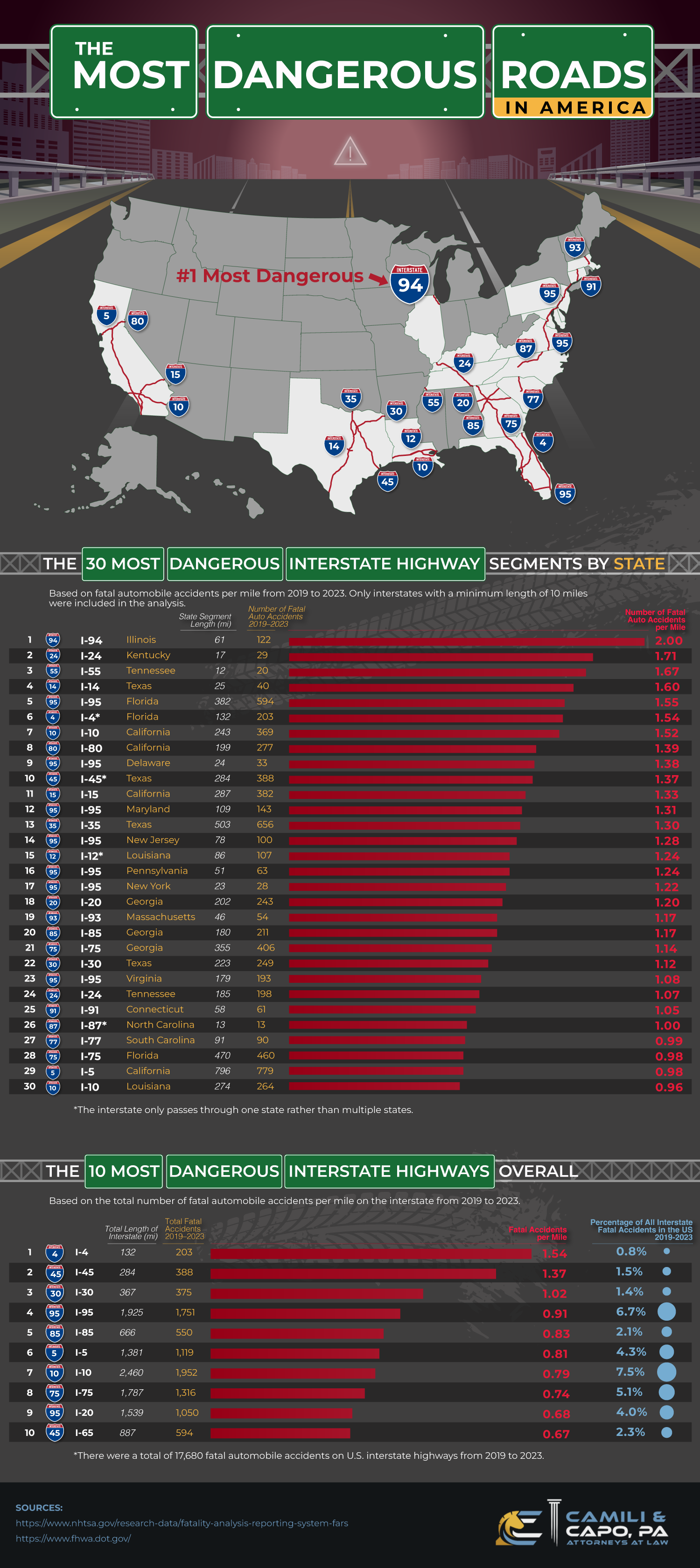 <img src="https://cdn.sanity.io/images/bbnawgvb/production/1a81cef1cc4c966a874365a43afffa1a517222fa-1500x3360.png" alt="The Most Dangerous Roads in America - Camili Law New Jersey Highway Accident Lawyers - Infographic" title="The Most Dangerous Roads in America - CamiliLaw.com - Infographic"></a><br><a href="https://www.CamiliLaw.com" alt="Camili Law New Jersey Highway Accident Lawyers" title="CamiliLaw.com">By CamiliLaw.com</a>